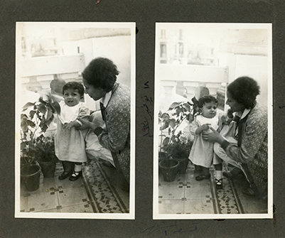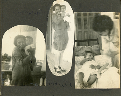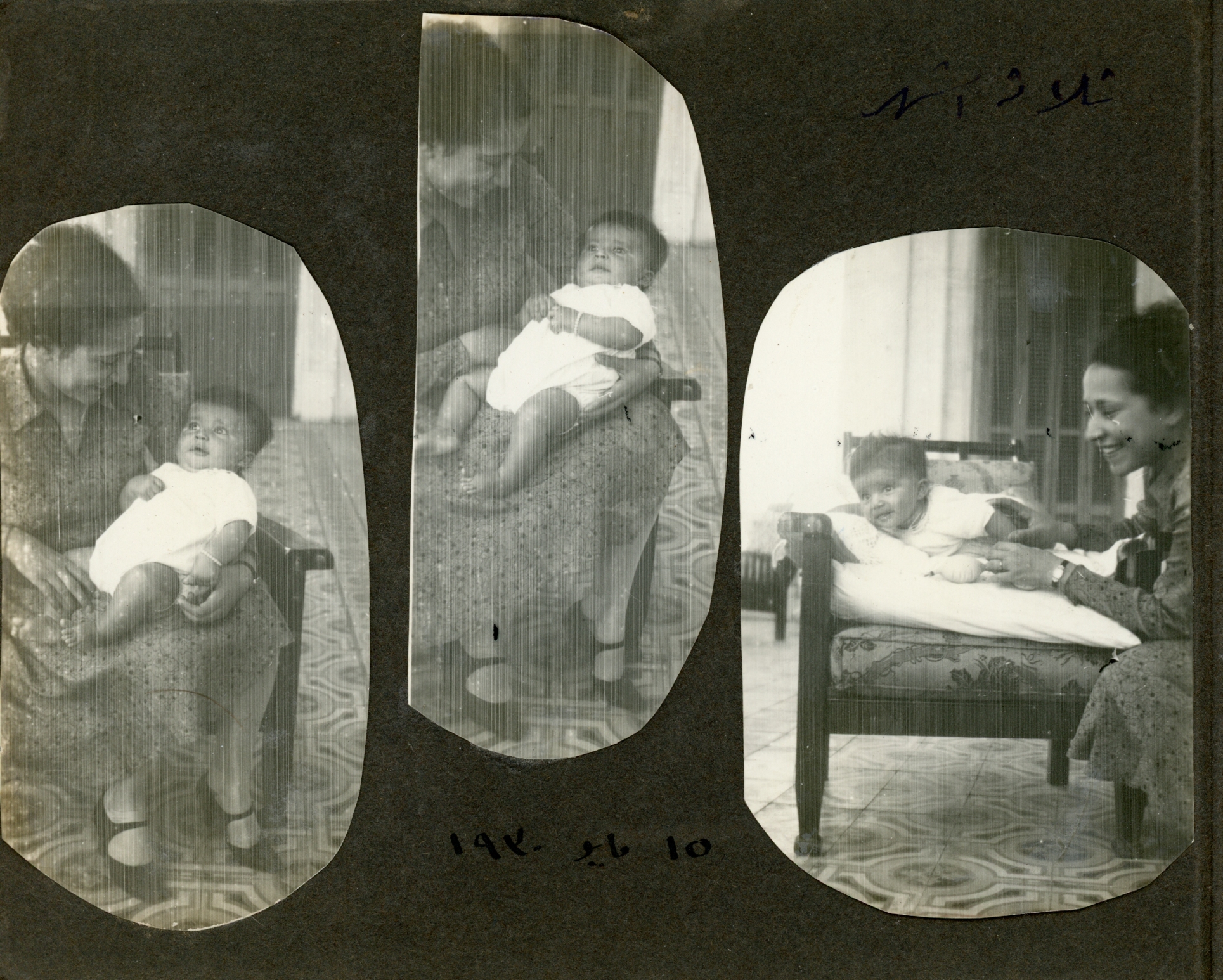 Three photos. Zienat with baby, baby on chair, unidentified woman with baby.