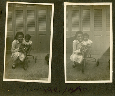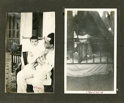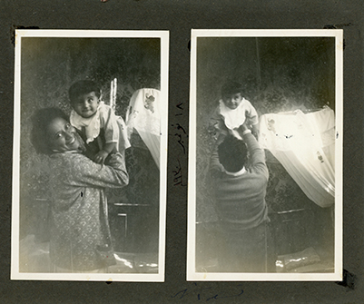 Three photos. Unidentified woman with baby (nanny?)